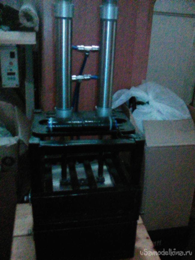 Два пневмоцилиндра с диаметром поршня 30мм и ходом 200мм установлены сверху и штоки соединены с лапой пресса по средством штатных резьбовых соединений.