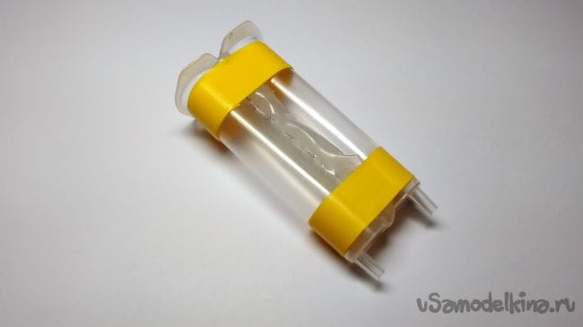 Шаг 2: С помощью клеевого пистолета, склеиваем два шприца друг с другом.