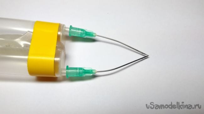 Шаг 4: Далее нужно согнуть иголки так, чтобы они еле-еле касались друг друга.
