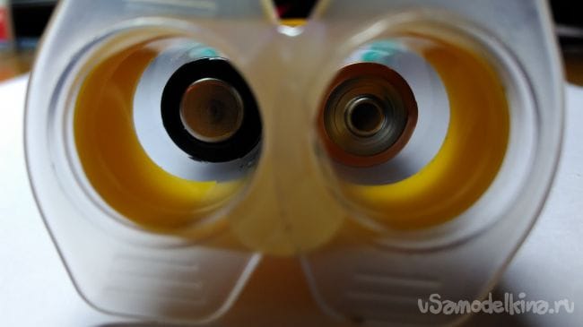 И вот наш портативный выжигатель готов! Он начнёт работать если мы замкнём нашу систему прижав поршень к батарейки.