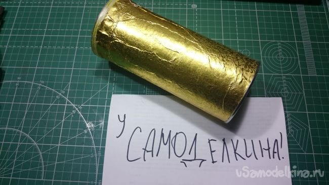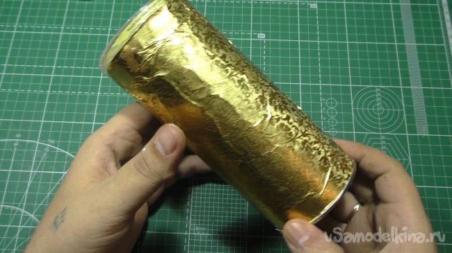 И чтобы наш калейдоскоп выглядел совсем как настоящий, обклеиваем поверхность цилиндра калейдоскопа оберточной бумагой.