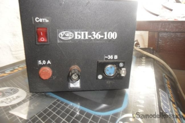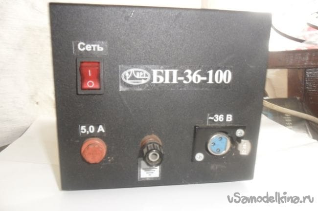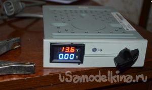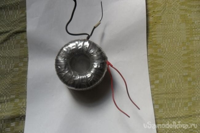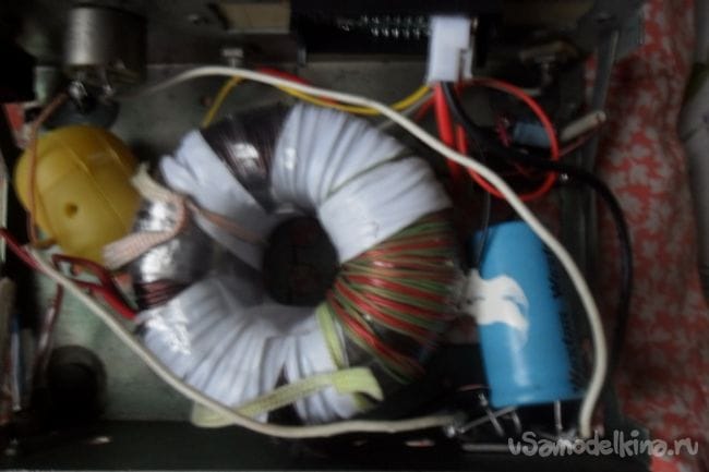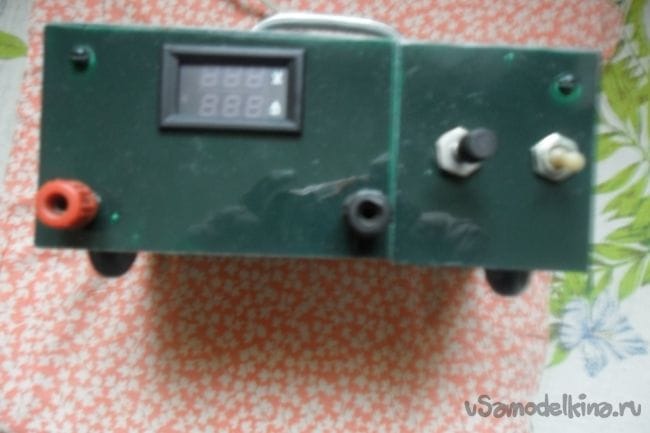 Трансформатор из корпуса вынул, смотал со вторичной обмотки 50 витков. Для питания вольтамперметра намотал отдельную обмотку в два провода - 40 витков. Блок питания решил собирать в другом корпусе, этот корпус отштампован из толстоватого железа и трудно поддается обработке. Лицевую панель вырезал из куска пластика от холодильника.