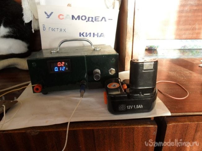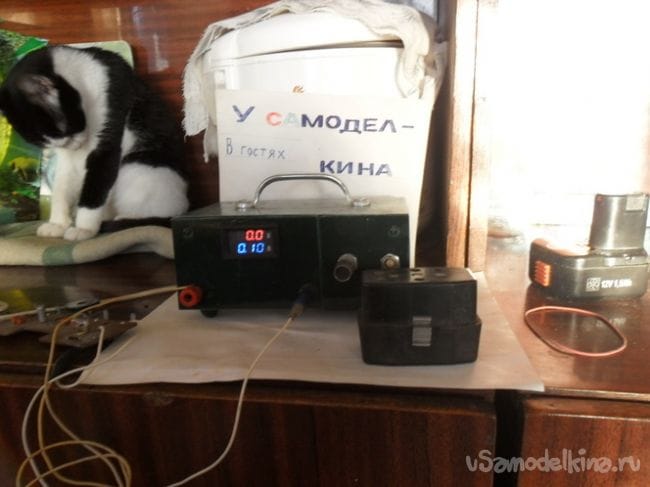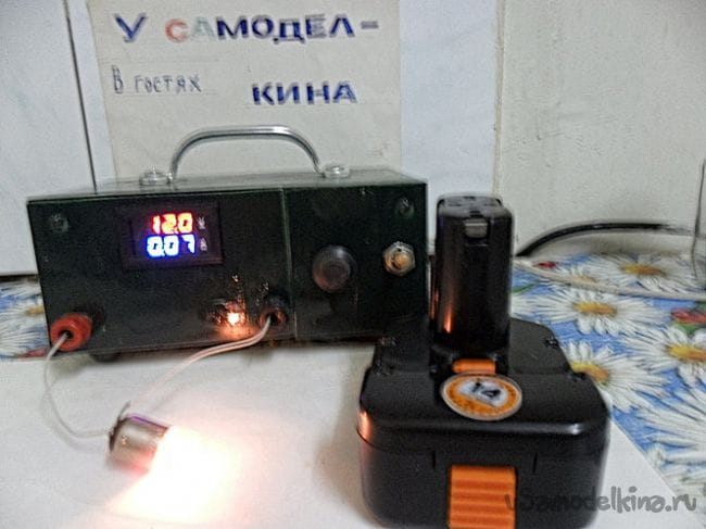 микросхему спрятал в пенал от киндер сюрприза, в пенале предварительно насверлил отверстий для вентиляции. Крышку корпуса снабдил ручкой для переноски. Электрическая схема блока питания типичная, несколько поделок видел даже на нашем сайте, поэтому ее не привожу в статье. Тестирование блок прошел успешно, кроме этого им можно заряжать аккумуляторные батареи. В настоящий момент формую аккумуляторный блок от шуруповерта.