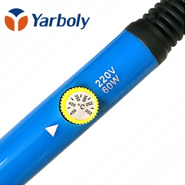 Выходная температура электро-паяльника от 200 до 450 градусов цельсия. Имеет выходную мощность в 60 Вт.
