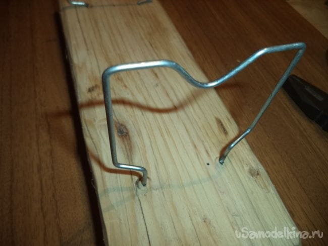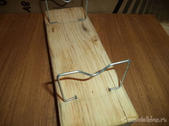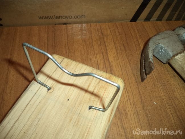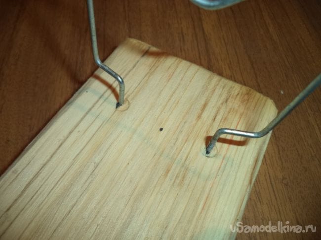 Теперь держатели прибиваем молотком в отверстия дощечки.