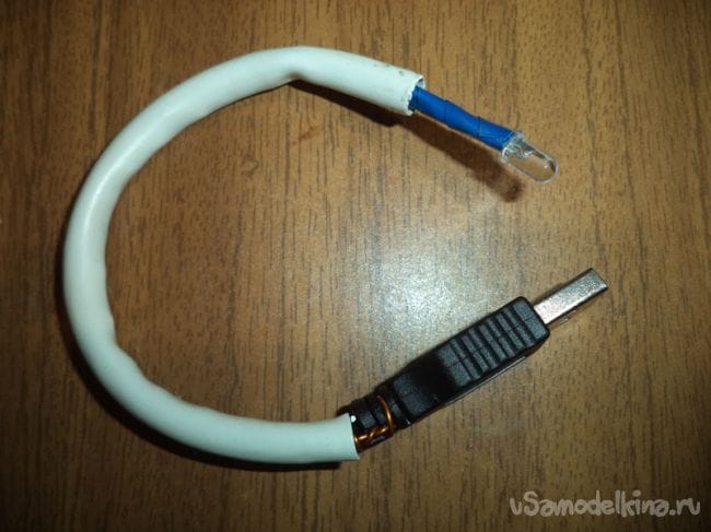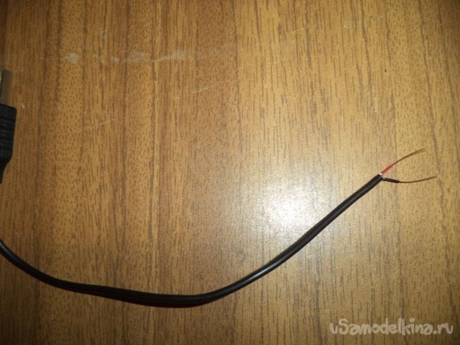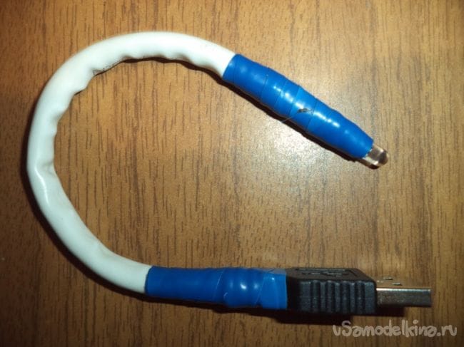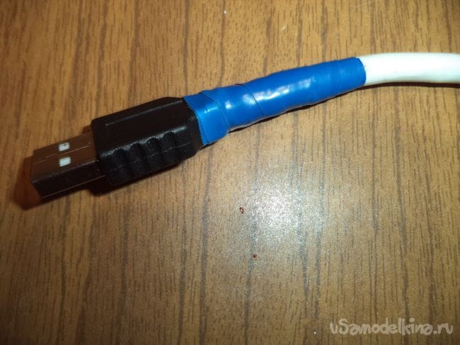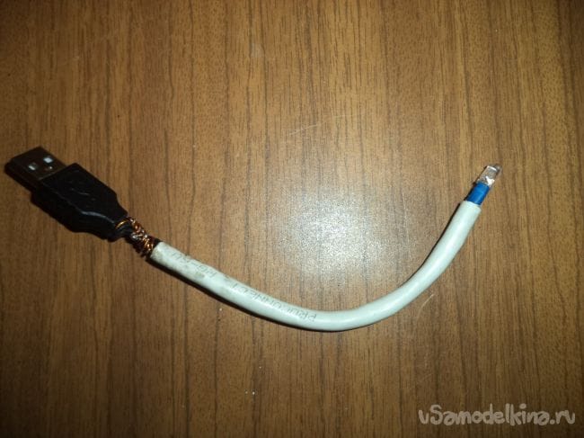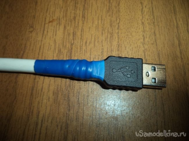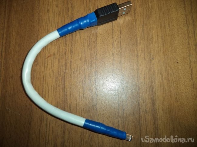 Первым делом я взял usb кабель, поместил её внутрь белой резиновой трубки и с остатком в 2 сантиметра отрезал лишний кусок кабеля.