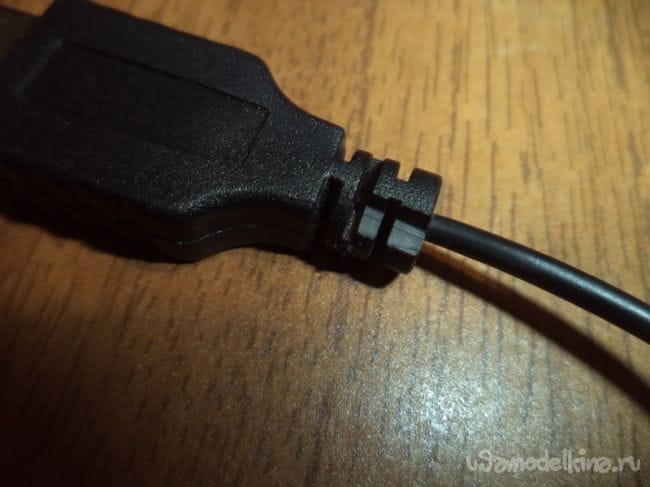 Отрезал углубление в изоляции usb выхода кабеля, как на фотографии: