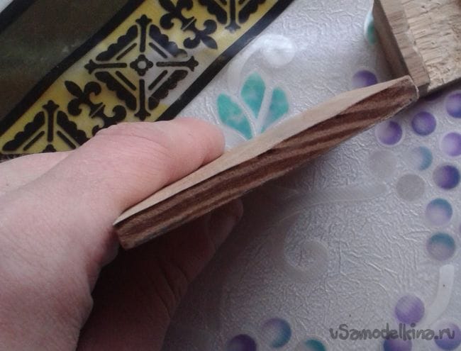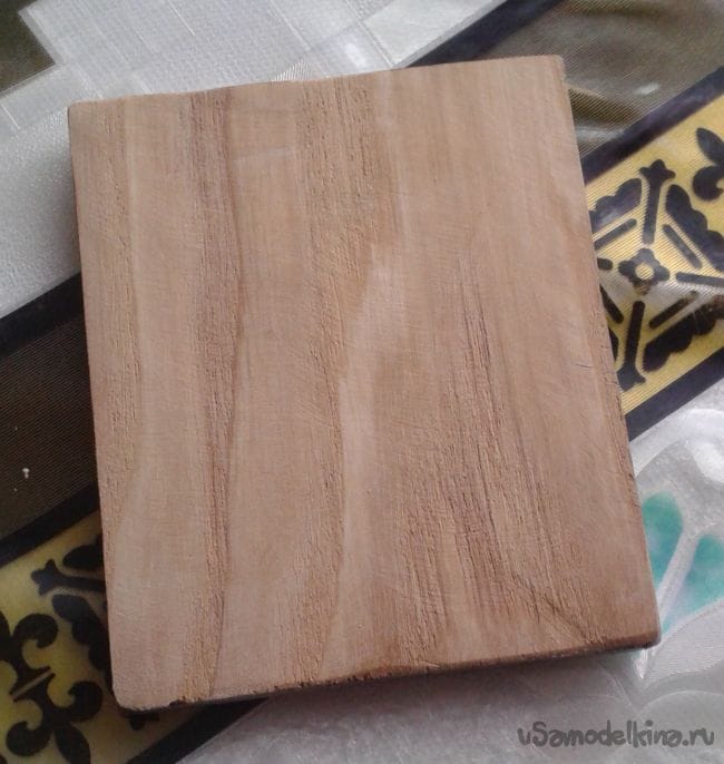 После того, как определились с размерами подставки можно браться за инструменты и выпиливать основную часть. Основой в подставке служит её так называемая спинка, размеры которой 8*9см. Толщину основы берем 5 мм, не больше и не меньше, так как не хочется, чтобы подставка была тяжелой или же из-за недостатка толщины слишком хрупкой. Для этого я распилил поперек уже выпиленную дощечку 8*9, сократив толщину с 18 до 5 мм.