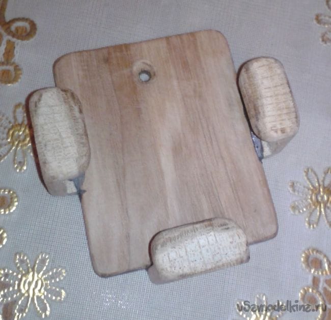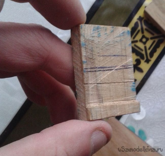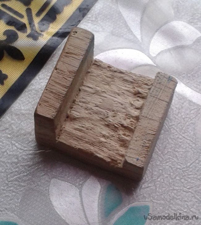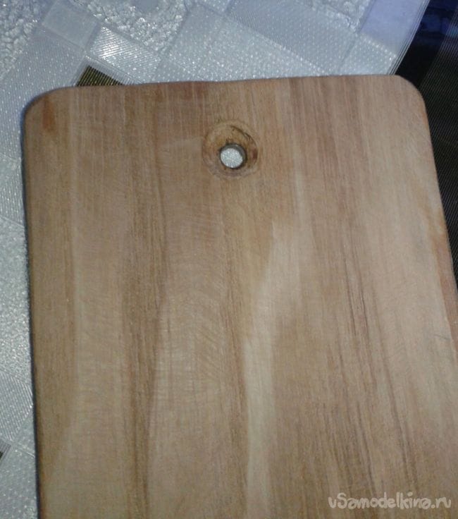 Теперь нужно просверлить отверстие для крепления подставки к стене, сверлим сначала сверлом 3мм, затем 6мм, но не насквозь, для того чтобы скрыть шляпку шурупа. Потом скругляем углы наждачкой.
