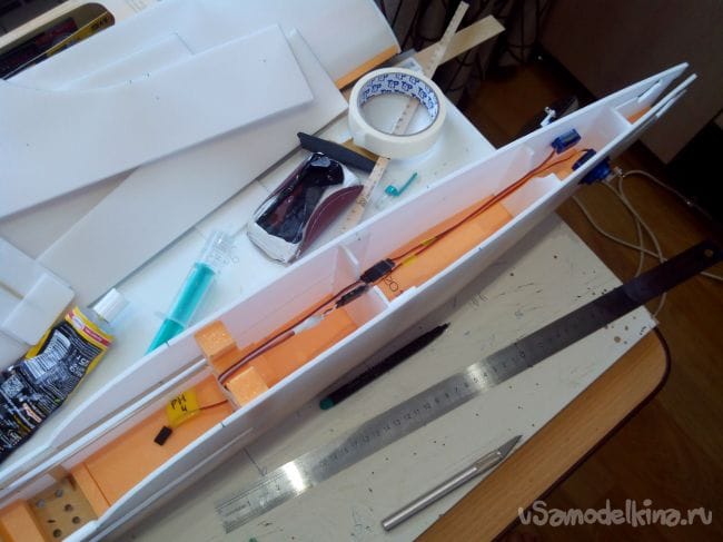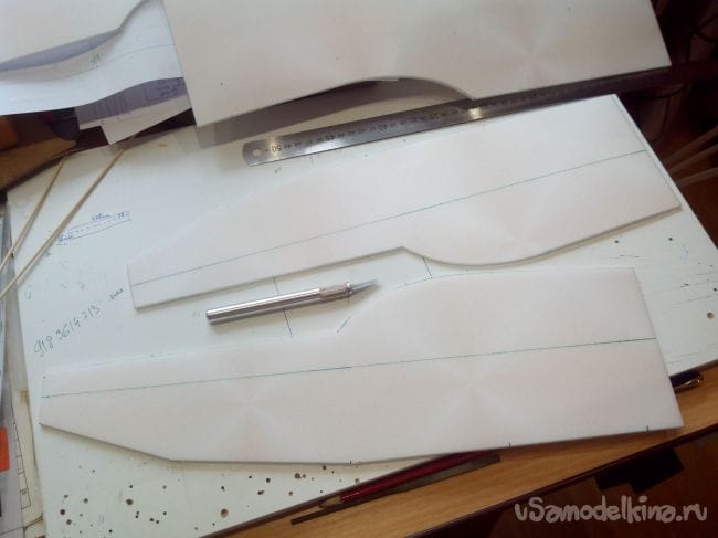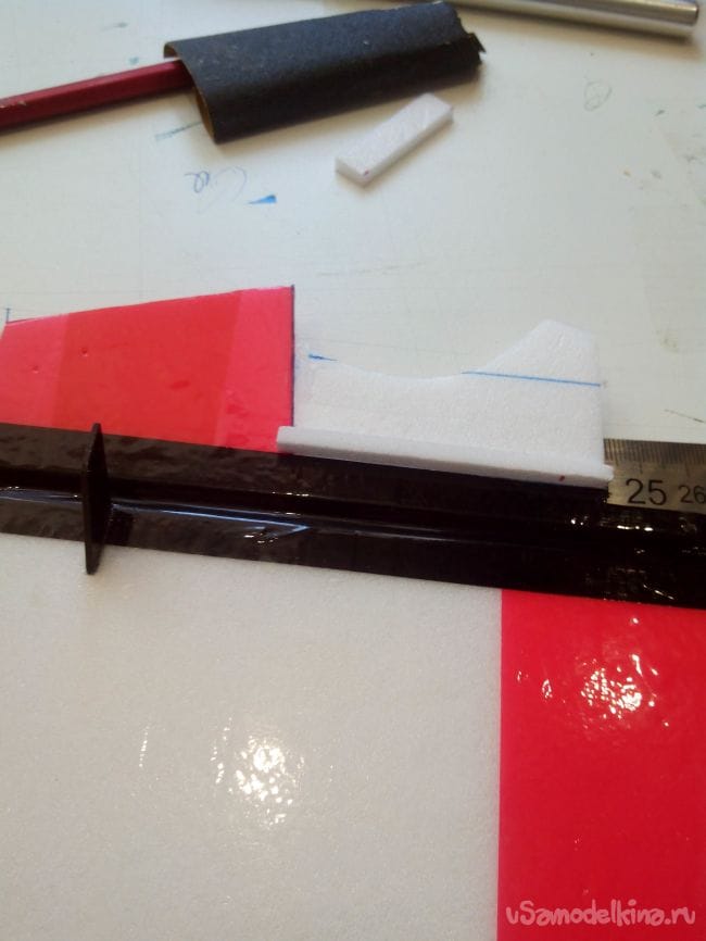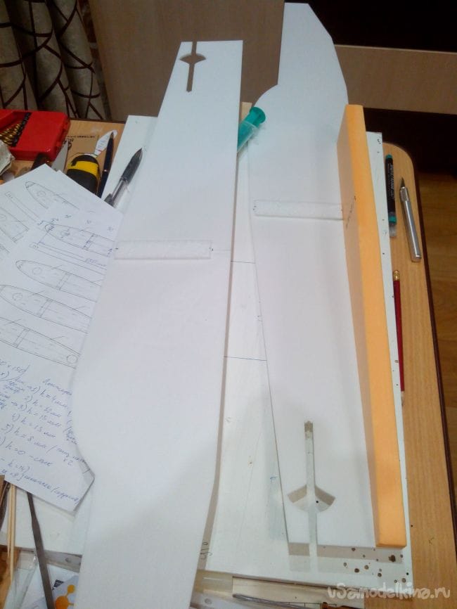 Стабилизатор и киль у меня остались с первой модели, а тогда я сфотографировать процесс не догадался. Но их изготовление сложностей вызвать не должно.