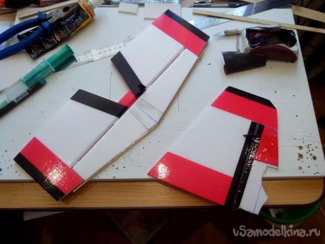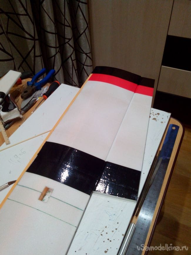 Горизонтальное оперение готово – можно обклеивать скотчем.