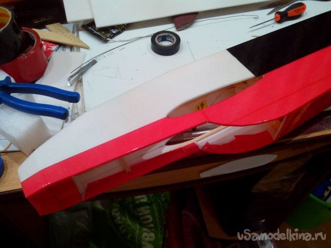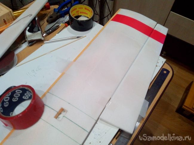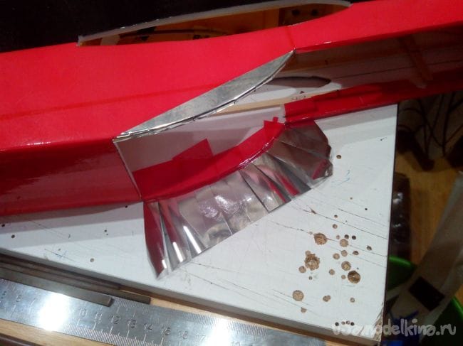 Навешиваем второй элерон и обклеиваем вторую половину симметрично первой.