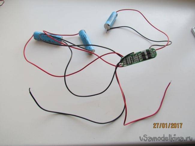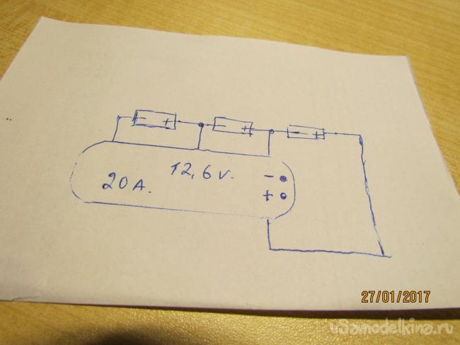 Паяем батарейки по этой схеме, провод желательно толстый.