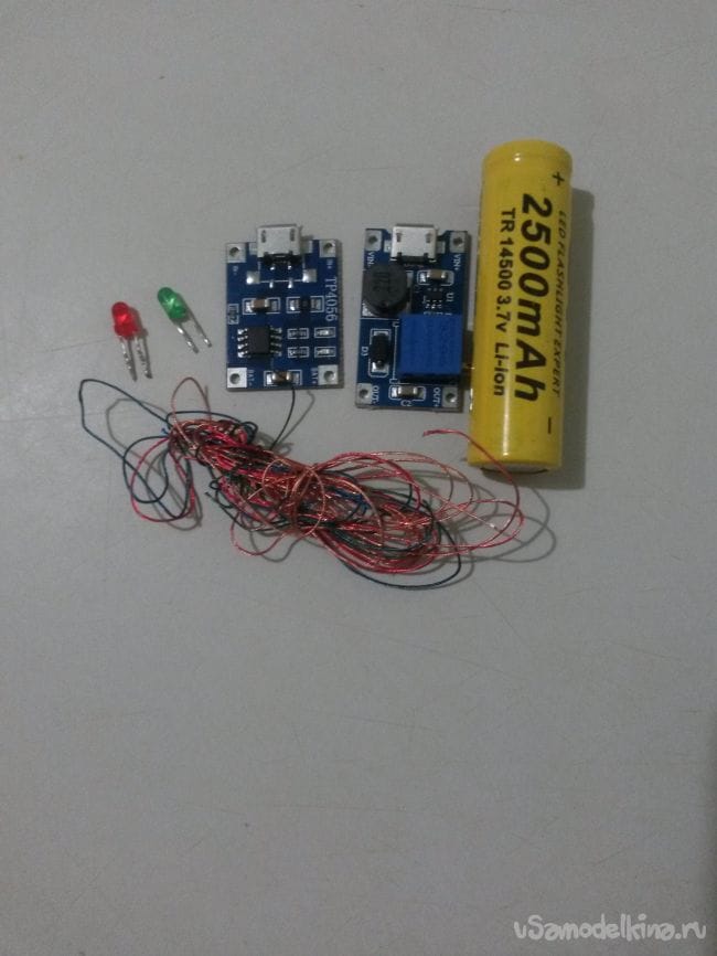 Аккумулятор Li-Ion 3.7в с емкостью 2500 mAh можно и с большей или с меньшей емкостью, у меня в наличии был этот.