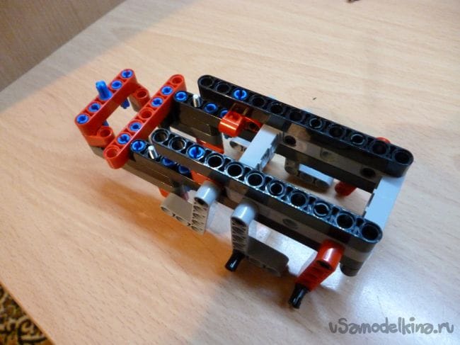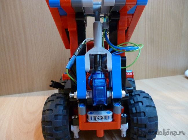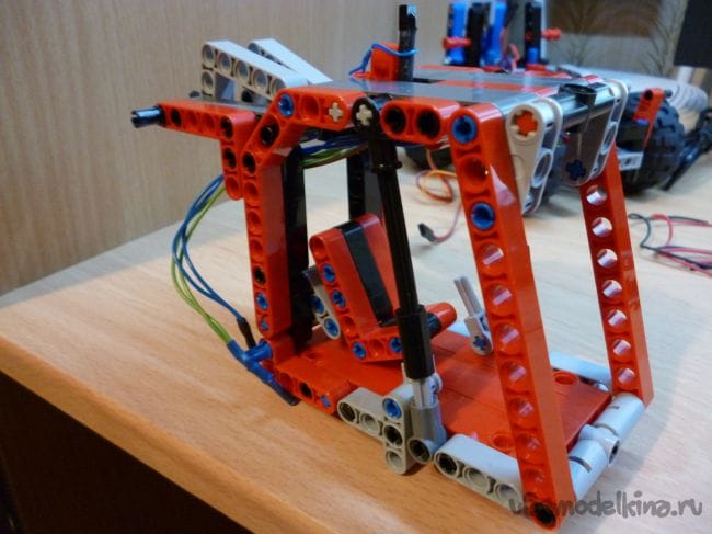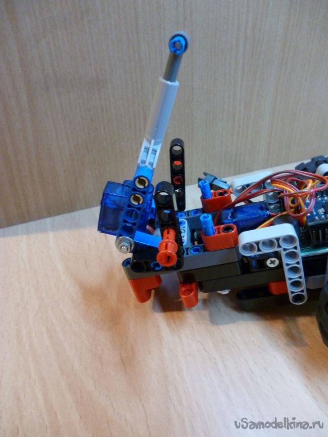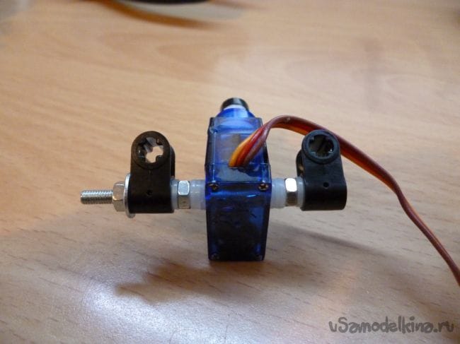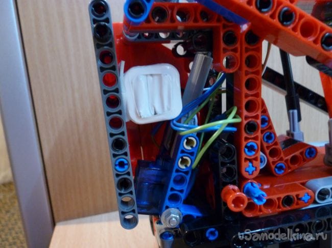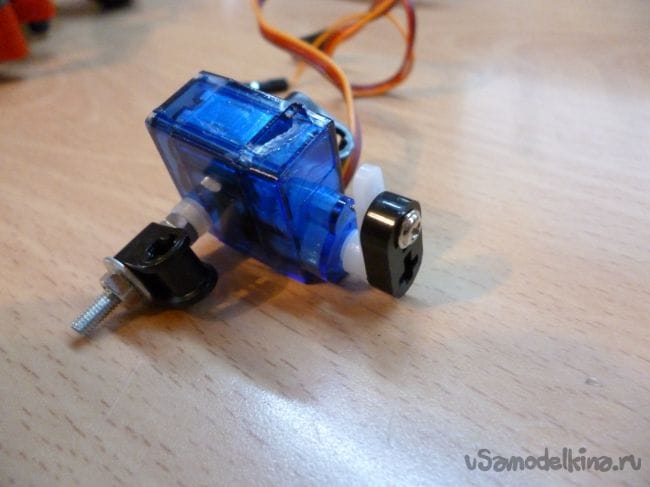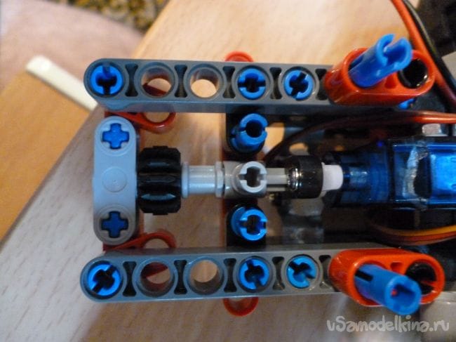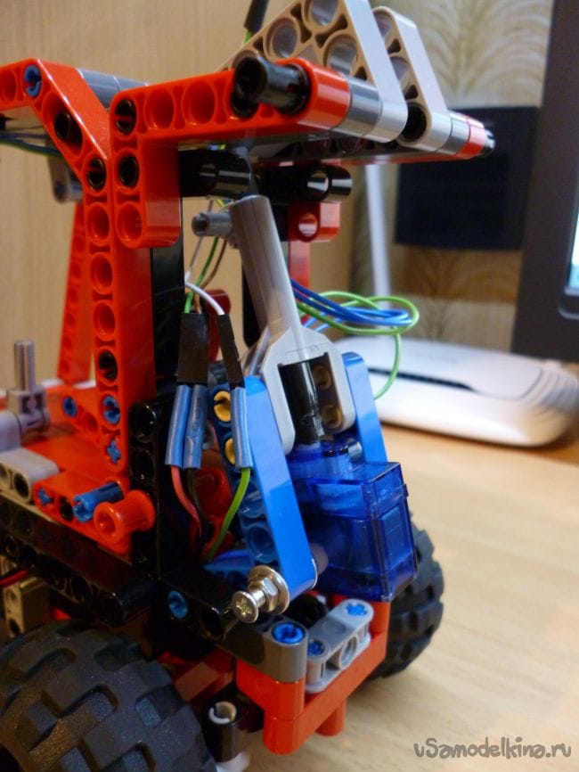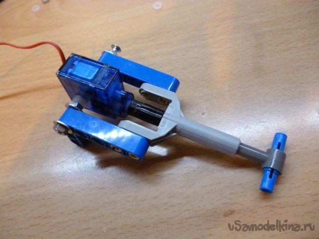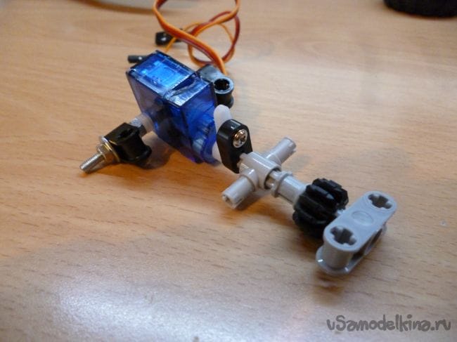На вал сервопривода надеваем рычаг с прикрученной деталью от lego: