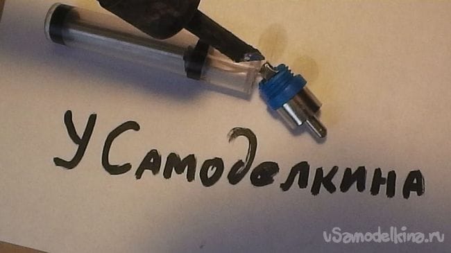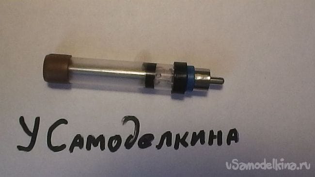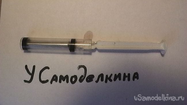 Корпус делаем из медицинского шприца на 3ml. Обрезаем его с обеих сторон, чтобы длина было примерно 55 мм. Аккуратно обрабатываем срезы, смываем нанесённые метки (кстати, они легко смываются соляркой).