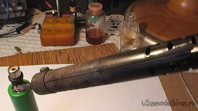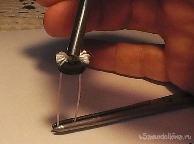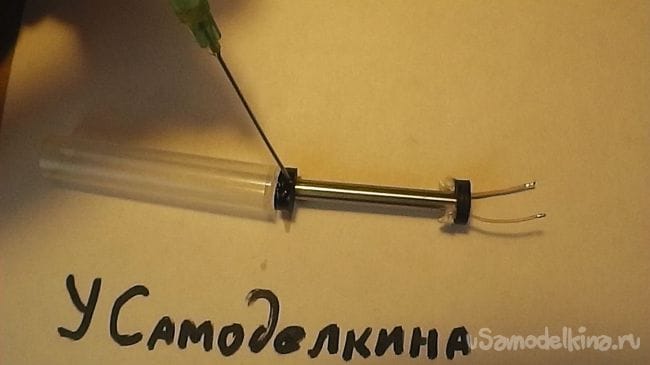 Фото 5 Нагреватель - это нихромовая проволока диаметром 0,15 мм, концы которых намотаны и припаяны к мягким многожильным проводникам с ортофосфорной кислотой. Рабочий участок нагревателя должен быть длиной 26 мм. (подобрано опытным путём).