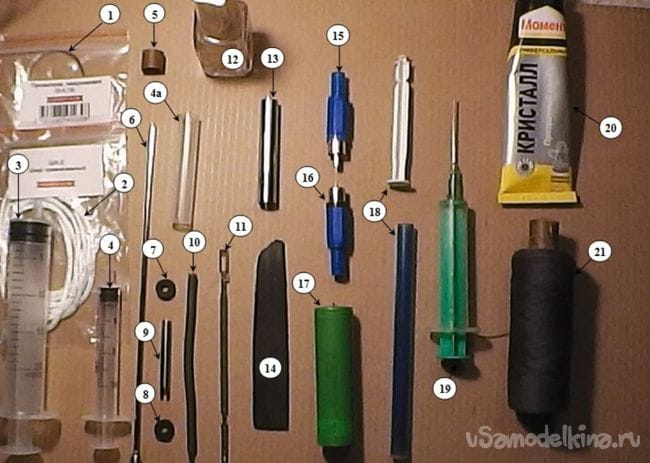18. Для сборки атомайзера : шток держателя поршня шприца 3 ml. и корпус шариковой ручки, наружный диаметр - 8 мм.