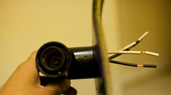 Затем проверим, работает ли конструкция. Берем лампы и вкручиваем в патроны, если лампы засветились, значит все в порядке, можно подключать основной провод к вилке.