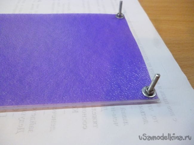 Вначале в наш прозрачный прямоугольник вставляем болтики, с обратной стороны надеваем светофильтр, затем шайбы и затягиваем гайками.