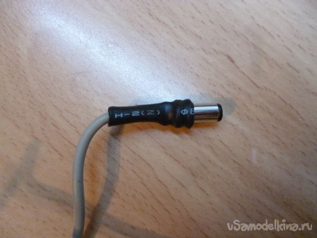 Светодиодная лента WS2812 питается от 5 вольт. Поэтому для питания нам нужен стабилизированный источник питания в 5 вольт. Напоминаю, все действия производить надо на отключенном от сети устройстве. Я использую переделанную зарядку от телефона. Нужно отрезать провод у штекера для телефона, зачистить провода и припаять к ним наш штекер. Красный провод - плюс паяем к центу, черный – минус к внешнему контакту. Изолируем.