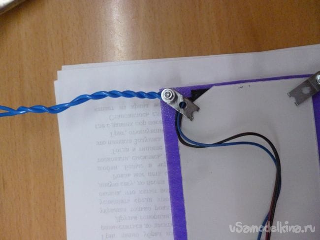 Устанавливаем нашу основу светодиодами вниз. Для фиксации я использовал металлические пластинки от детского железного конструктора. Прикручиваем их гайками на наши болтики. Вместо них можно использовать проволоку, согнутую в петлю. Или вырезать крепления из пластика.