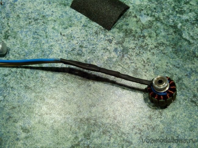 Внимательно осматриваем зубы статора на наличие потертостей защитной эмали. При необходимости замазываем их лаком (можно даже лаком для ногтей).