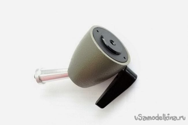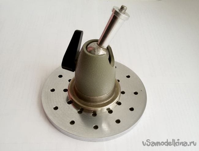 Переходник наворачиваем на установочную резьбу фотоштатива. В связи с тем, что резьба специальная, необходимо найти соответствующий метчик для нарезания резьбы в переходнике или искать другой выход. В моем случае помогло то, что переходник изготовлен из мягкого сплава. Стальной резьбовой наконечник фотоштатива, за счет своей твердости, «переформовал» стандартную резьбу переходника под свой шаг резьбы.