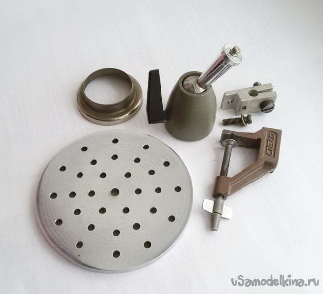 - переходник для соединения перечисленных деталей (изготовлен для держателя, из алюминиевого сплава).