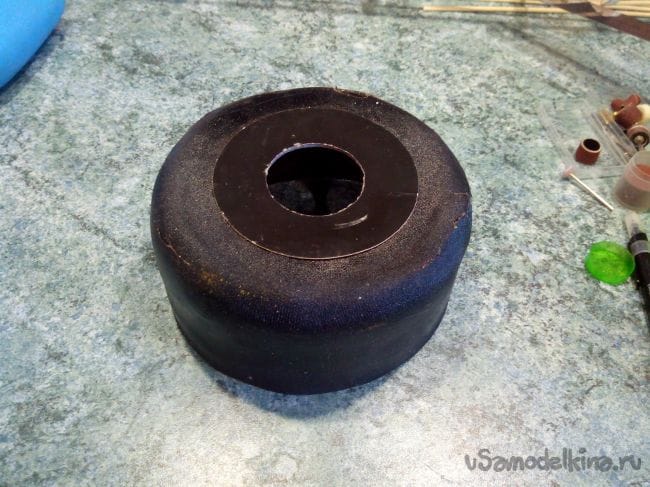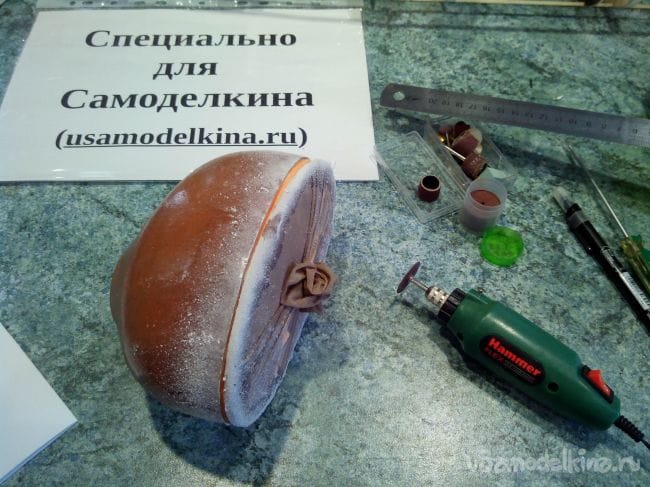 Наждачной бумагой обрабатываем болван для получения ровной поверхности.