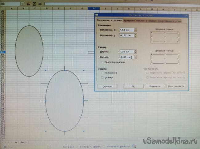 В результате, шаблоны шпангоутов сделаны в Excel, - это эллипсы с заданными размерами.
