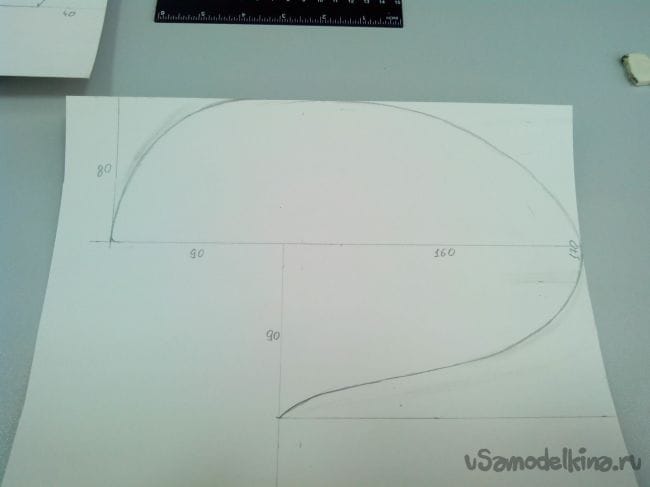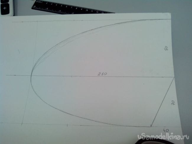 Итак, чертим на листе потолочки по шаблонам шпангоуты.