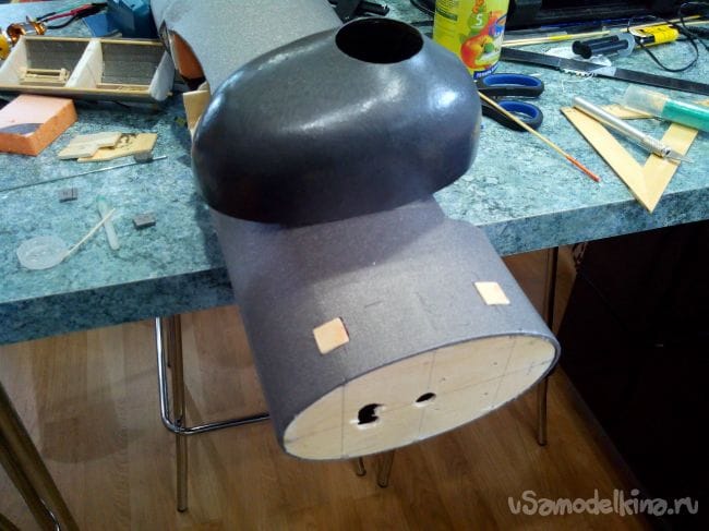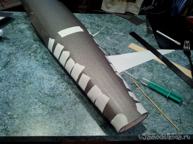 Теперь можно приклеивать хвостовой конус.