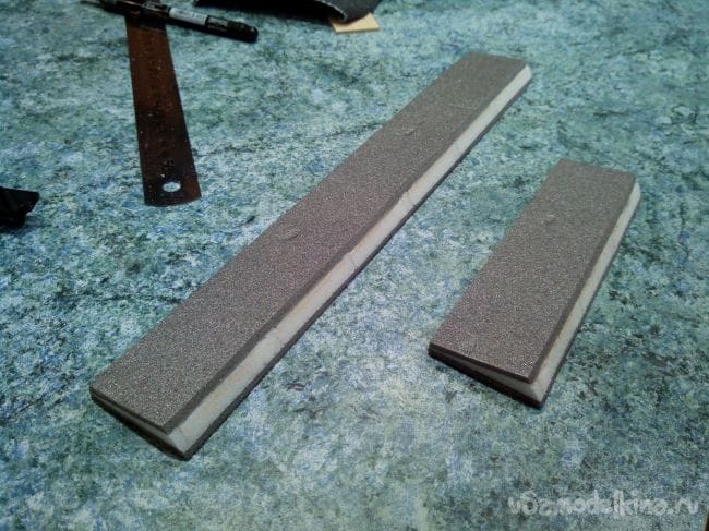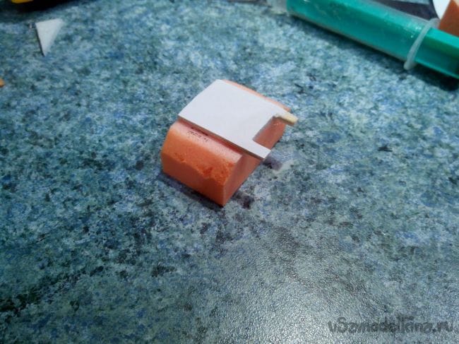 Затем ошкуриваем и приклеиваем за кабиной.