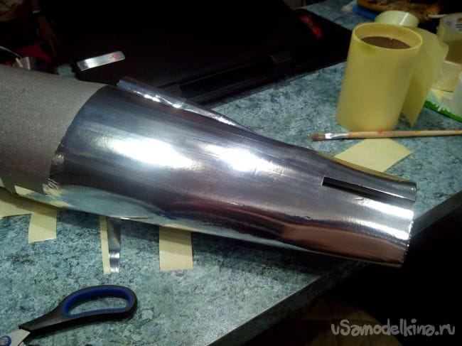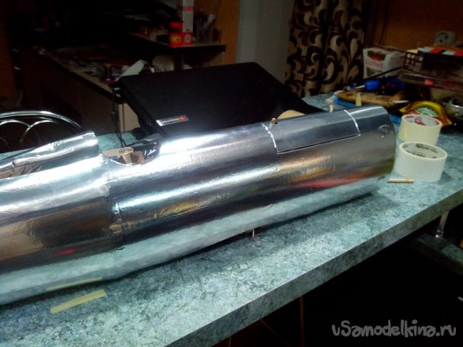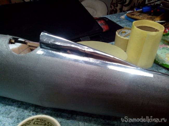 Фюзеляж решил обклеить металлическим скотчем. Начинать лучше с хвостовой части.