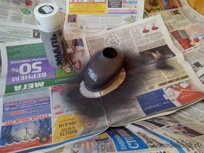 Покрасить капот я решил в цвет фюзеляжа – серой краской из баллончика, но можно и маркером.
