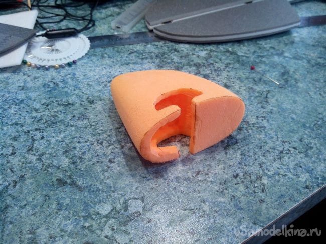 Наждачкой придаем ему окончательную форму и дремелем делаем внутри выемку под кабанчики рулей.