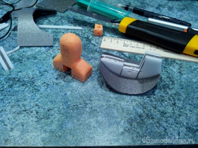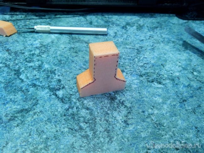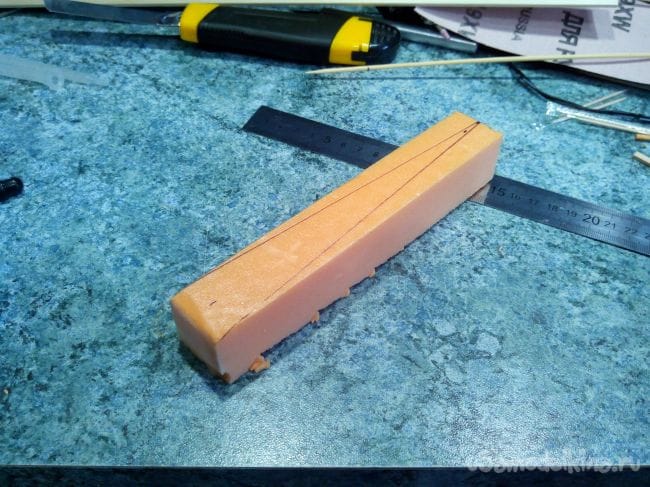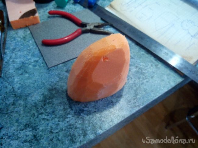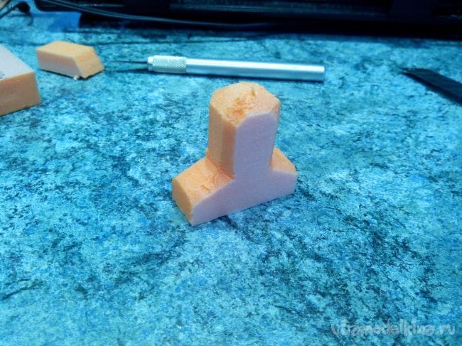 Из пеноплекса вырезаем заготовку фигурки пилота