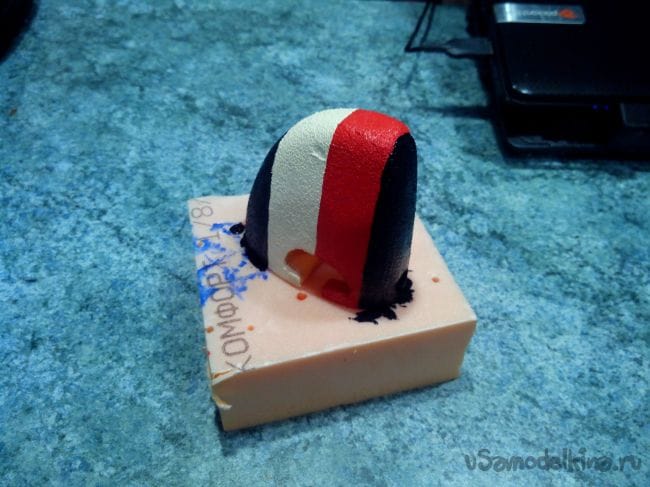 Красим конус в цвета руля направления акриловыми красками.