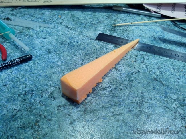 Из пеноплекса вырезаем концевую часть фюзеляжа – конус.