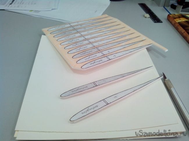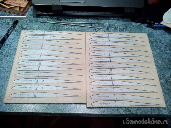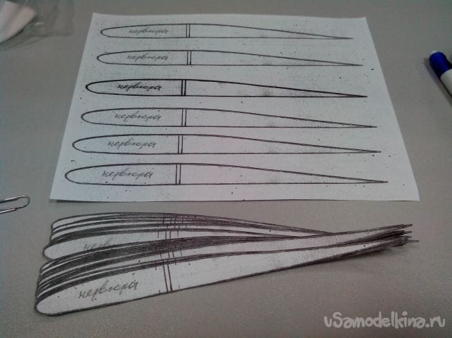 Вырезаем шаблоны нервюр из бумаги (я их размножил на ксероксе).