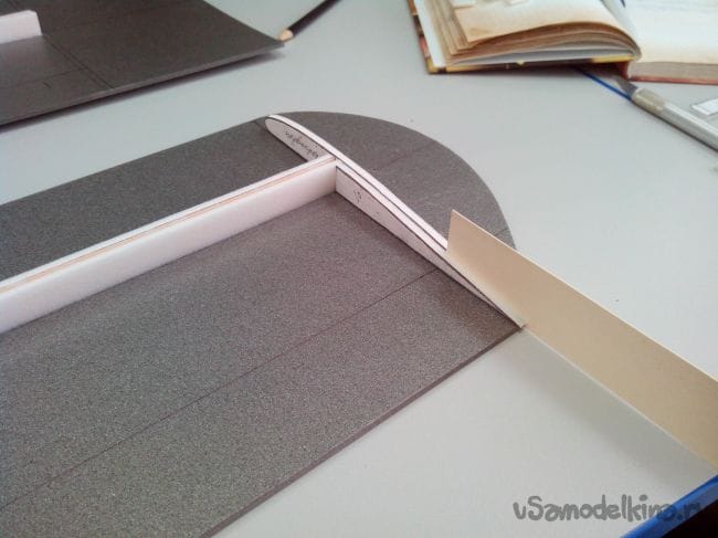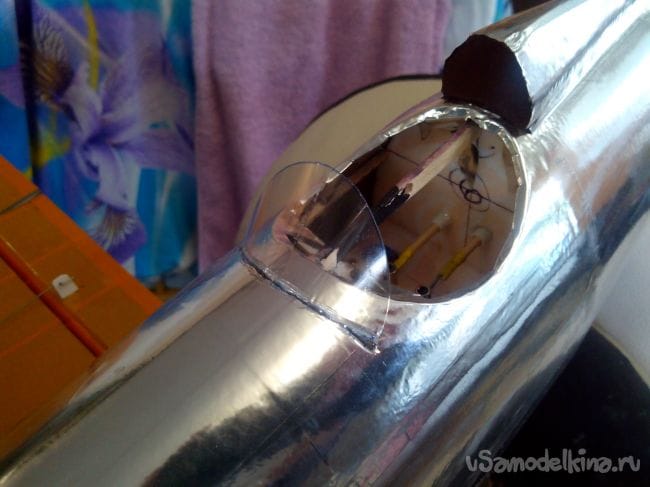 Приклеивается она к пятому шпангоуту уже после вырезания места под крыло.