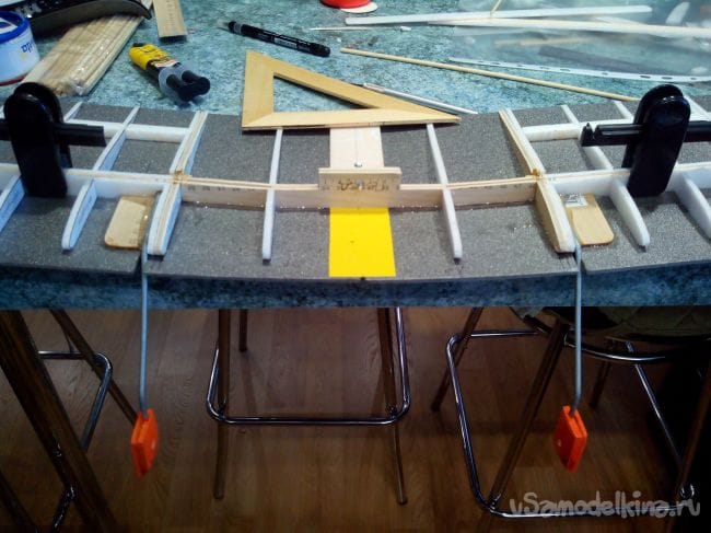 Крыло на данной модели будет цельным, кроме того к нему будут приделаны стойки шасси. Мне автомобиль позволяет такое перевозить, но при желании Вы можете сделать крыло разборным. Профиль – плоско-выпуклый.