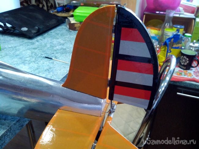 Обклеиваем киль и руль направления.