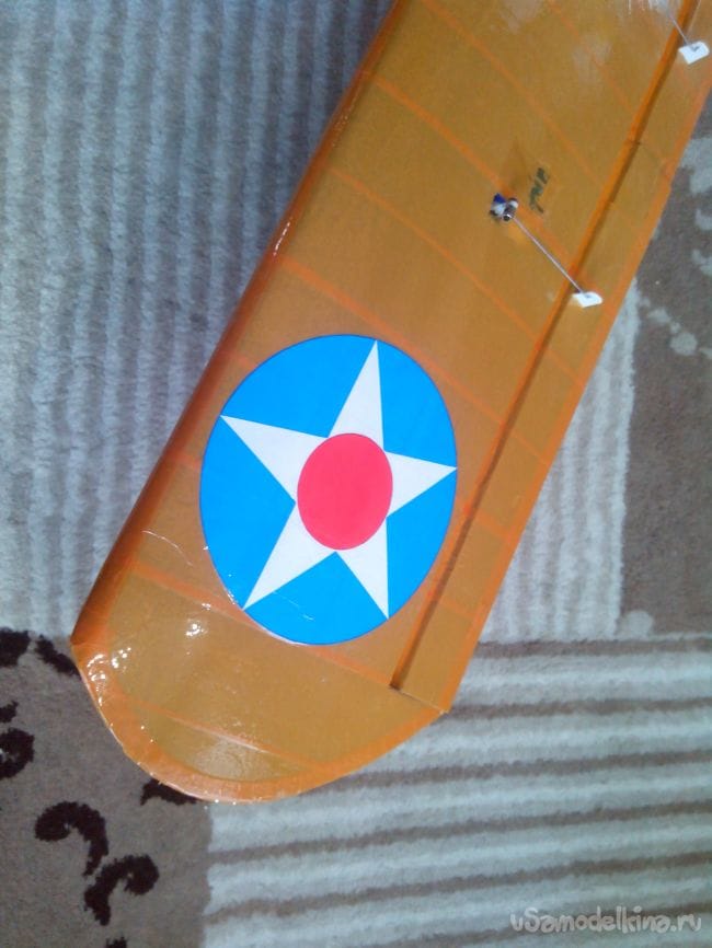 Низ крыла (для хорошей читаемости модели в воздухе) украшаем полосками черного скотча.