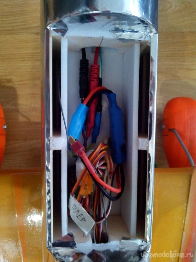 Чтобы потом не мучиться со спицами и крюками, рекомендую до обшивки фюзеляжа протянуть Y-кабели и удлинители от места крепления крыла до мотоотсека.