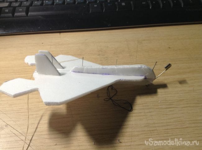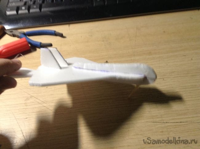 Шаг 12: настраивание модели и устранение неполадок. Если самолёт при полёте быстро снижается - уберите немного пластилина или немного погните стабилизаторы вверх (находятся на конце самолёта, отмечены маркером). Если делает петлю - опустите стабилизаторы вниз. Если делает «бочку»(спиральные движения вокруг оси) - погните элерон (задний конец крыла) того крыла, в сторону которого делается «бочка». Если самолёт резко поворачивает в какую либо сторону - поверните заднюю часть килей(отмечены маркером, находятся на верхней части самолёта) в противоположную сторону. По остальным вопросам пишите в комментарии.