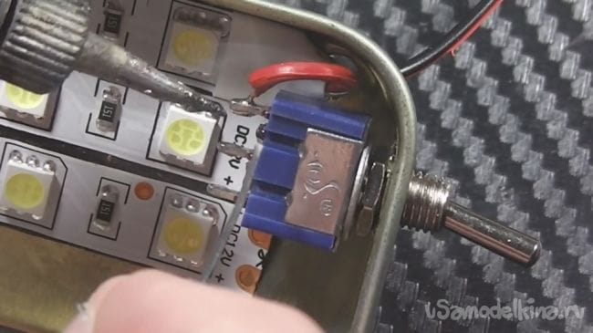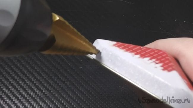После этого делаю все нужные отверстия, сверлом «Ёлочка» (Можно и другим, просто им удобнее работать). Вставляю тумблер. И все спаиваю.