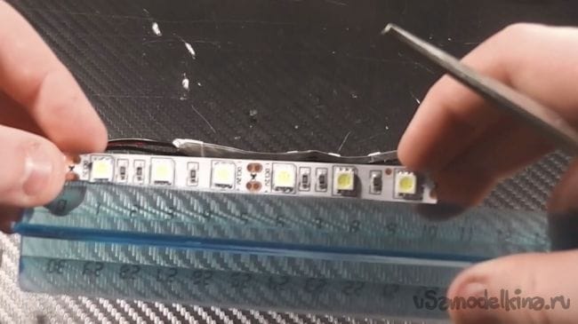 Для начала нарезаем светодиодную ленту, по 10 см. у меня таких планочек получается 6.