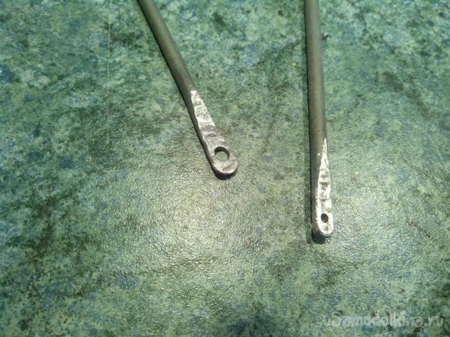 Сверлим в расплющенных концах отверстия под карабины и под саморезы.